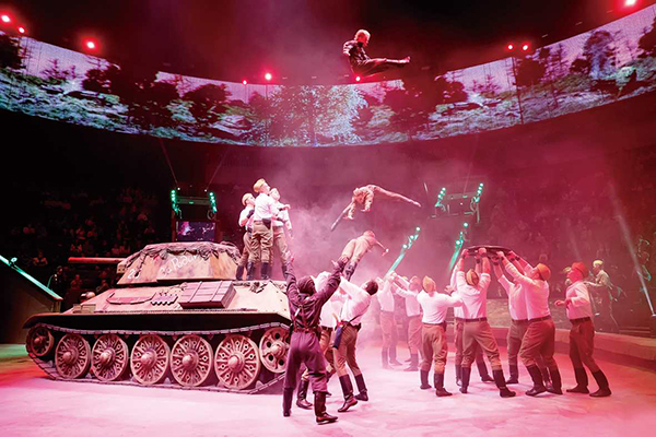 由于线上比赛的便利性,规避了现场比赛大型道具和驯兽节目不能前来的限制,世界高水平的节目在本届杂技节中得以亮相。如俄罗斯的《集体技巧》节目,在一辆特制坦克车上表现了高超的杂技技巧,展现出别具一格的“硬派”浪漫;阵容强大、品相上乘的俄罗斯大型驯兽节目《驯熊》《驯老虎狮子》,也弥补了往届杂技节国外大型驯兽节目不能前来的遗憾。
