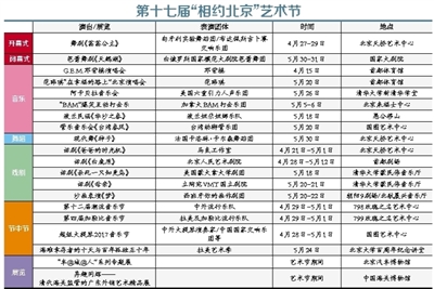 “相约北京”艺术节是中国国家级大型综合国际艺术节和亚洲地区最大的春季艺术节,已经成功举办16届,累计有120个国家和地区的1020个艺术团体、32000名艺术家通过这一舞台向中国观众展示异彩纷呈的世界各国文化,观众总人数达420万。第十七届“相约北京”设立音乐、戏剧、舞蹈、展览、户外音乐节等艺术板块,共邀请21个国家和地区的23个优秀表演艺术团体,400余名中外艺术家,为观众奉献近百场演出和展览。闭幕式是白俄罗斯国家模范大剧院芭蕾舞团《天鹅湖》。