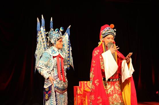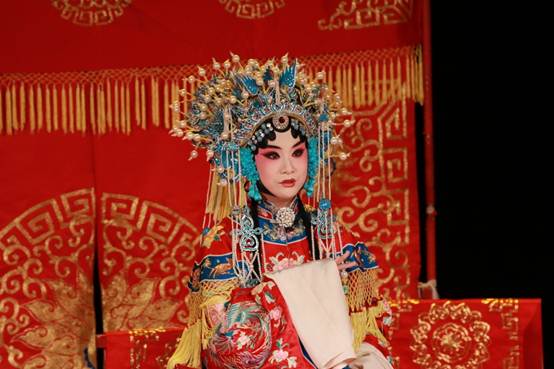当晚演出的《龙凤呈祥》展现了刘备过江、乔玄进谏、甘露寺相亲、洞房成亲等经典桥段。主持人尚远饰演乔玄,一段“劝千岁杀字休出口”的华彩唱腔堪比专业水准,大段唱词行云流水般的演绎引得一片叫好,沉稳的表演也将乔玄的老成持重表现得淋漓尽致;“女一号”孙尚香由主持人高滟饰演,不仅唱念韵味十足,表演也饱满细腻,扮相俏丽惊艳四座,将孙尚香的美丽聪慧刻画得入木三分,一颦一笑举手投足都吸引着观众视线;主持人于浩饰演的“戏精”大太监和大帅饰演的背满家伙、随时准备动手却出师不捷的“倒霉蛋”贾化,虽戏份不多却十分出彩,幽默风趣的演绎令台下的戏迷们忍俊不禁;大逗相声社演员李寅飞、叶蓬饰演的角色吴国太和刘备也活灵活现,讲究到位的唱腔和恰到好处的包袱笑料对角色进行了全新的诠释。主持人和演员们的传神演绎可谓处处出彩,两个小时的演出,剧场内掌声、喝彩声不断。