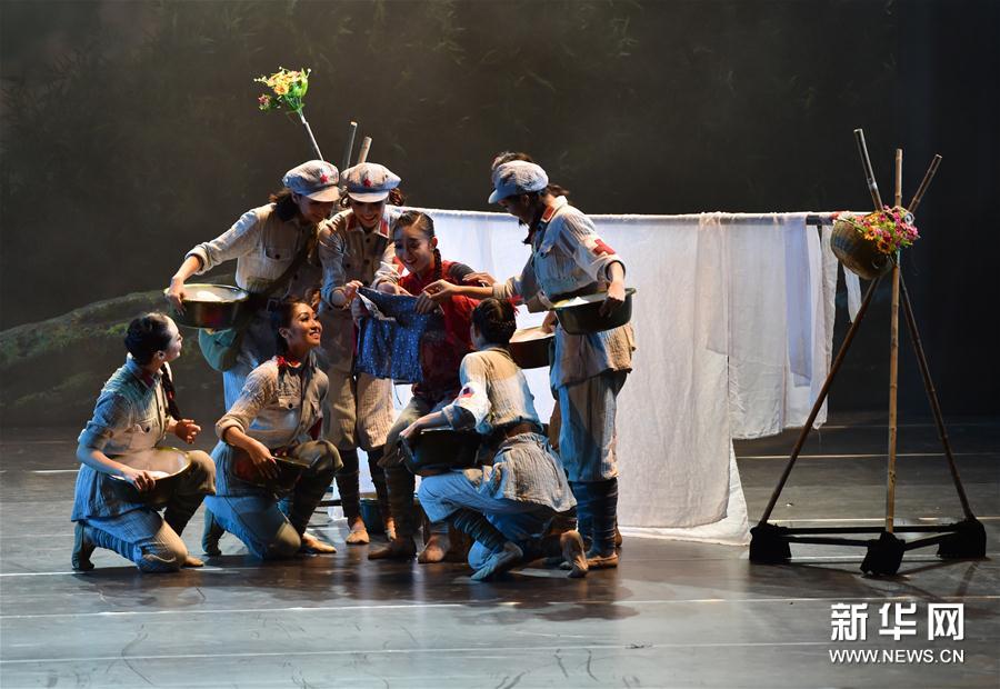 10月10日,演员在表演舞剧《井冈·井冈》。当日,北京舞蹈学院舞剧《井冈·井冈》在北京国家大剧院上演,这是国家大剧院第十届“春华秋实”展演周的演出之一。据介绍,本届展演周期间,来自全国8所艺术院校的数百名师生将先后登台,为观众带来11场精彩演出。新华社记者 罗晓光 摄