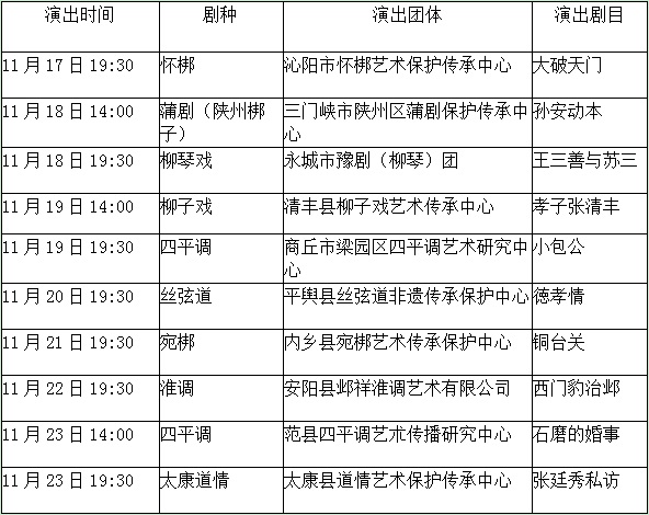 附:“唱响新时代——河南稀有剧种北京公益展演周”演出排期表
