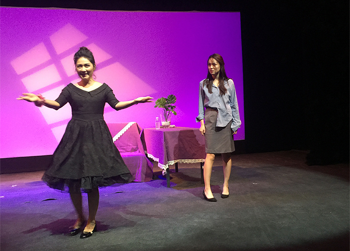 一株聪明、傲娇的夹竹桃,一条好记性的鱼,无边无际的湖,都是剧中人物的另一面,在与另一个自己的“对话”中,看清现实却又冲不脱。似曾相识又涂抹上了黑色幽默地演绎,餐厅服务员说着一口浓重的方言,与男演员表现的所谓中产阶级的体面形成反差和喜剧效果,也符合小剧场实验戏剧的属性,试图拉近与观众距离,在疏离中产生幽默感摩擦出火花。