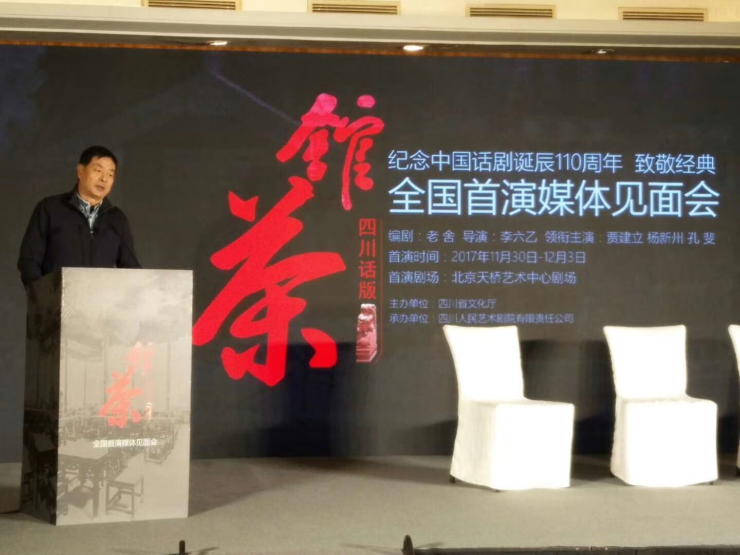 人民网北京11月17日电 由四川省文化厅主办,北京人艺著名川籍导演李六乙执导,四川人艺出品的四川话版《茶馆》,将于11月30日至12月3日在北京天桥艺术中心进行首轮演出。