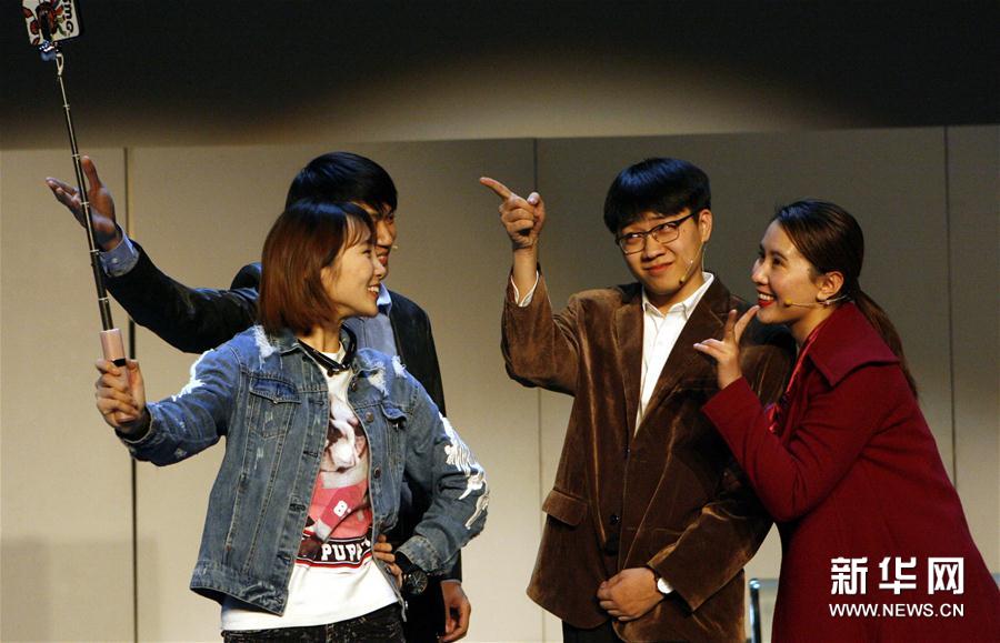 11月27日,演员在话剧《中关村守望者》中表演。当日晚,由北京市海淀区戏剧家协会和北京梦剧场共同打造的原创话剧《中关村守望者》首轮演出在北京收官,惠及5000余名群众。《中关村守望者》讲述了北京中关村地区一批年轻人的创业故事。在海淀区文化委员会的大力推动下,该剧作为海淀区2017年金秋演出季作品,以文化惠民的方式与广大观众见面。新华社记者 刘莲芬摄 来源: 新华社