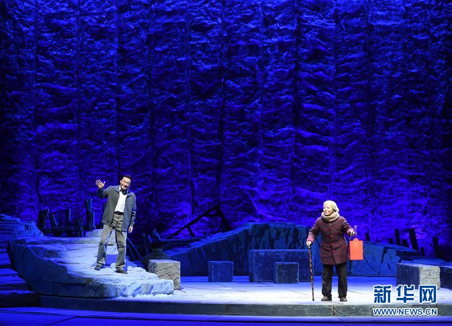 12月5日,在首都剧场,演员在表演话剧《干字碑》。当晚,“纪念中国话剧诞生110周年·戏剧东城10周年——全国话剧优秀新剧目展演季”在北京首都剧场拉开帷幕。据介绍,演出季期间,22部优秀剧目将在国家话剧院、首都剧场、天桥艺术中心等剧场上演。新华社记者 罗晓光 摄