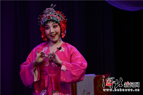 1月29日晚,由沙河市豫剧团表演的豫剧《抬花轿》在河北省话剧院儿童剧场上演。图为演出现场剧照。