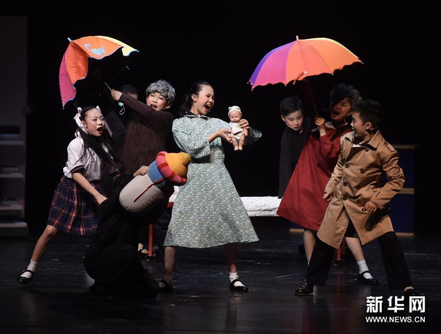 3月13日,学生在表演原创音乐剧《爱的烦恼》。当日,北京灯市口小学优质教育资源带原创音乐剧《爱的烦恼》在中国儿童艺术剧院上演。这一台原创音乐剧围绕社会热点“二胎”的话题展开。据介绍,这是灯市口小学优质教育资源带首次举办原创剧目的专场演出,故事灵感来源于学生,由专业人士主导,学生和老师共同参与创作。新华社记者 罗晓光 摄