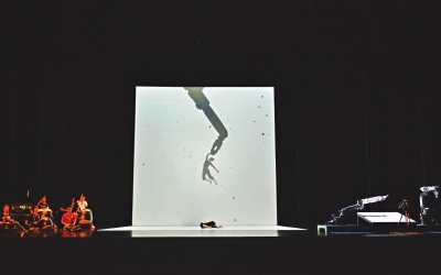 这并非想象中的—场“大秀”。大幕拉开,没有任何提示,观众席还有点吵闹,舞台上灯光却已经逐渐明亮,—列乒乓球台向舞台深处纵深排开,—对对小学生有节奏地击球对打。观众们这才意识到,演出已经开始了。随后,孩子们击打的乒乓球,变成了数十倍大的白色球体,飞到台前,又飞到观众席的上空。原来,这些硕大的白球,都是由无人机操纵的。