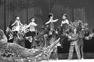 《神奇的宝盒》这出戏的音乐也是一大亮点,由知名作曲家吴小平创作,旋律优美,其中还运用了西洋歌剧的创作方法,比如,大鲨鱼与孩子们对话时运用了宣叙调,把大鲨鱼的厚重、幽默以及孩子们的恐惧恰如其分地表现出来。