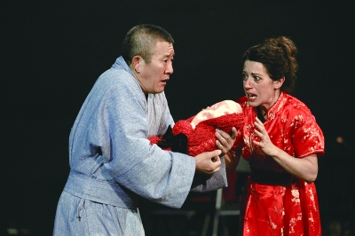 中国演员侯岩松(左)与希腊演员艾丽塔·库纳迪(右)在剧中分别饰演程婴和庄姬公主马里奥斯·罗洛斯 摄