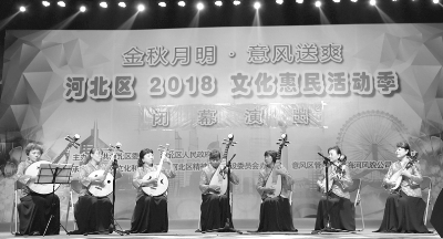 据了解,9月14日至10月21日,“金秋月明·意风送爽”天津市河北区2018文化惠民活动季共组织专场文化演出38场,涵盖戏曲、歌舞、曲艺、杂技、交响乐、露天电影等多种文艺形式,汇集了来自天津交响乐团、天津歌舞剧院、天津京剧院、天津市曲艺团等的120支文艺演出团队、4000余名演员,累计惠及观众超过两万人次,是截至目前天津市河北区参与人数最多、演出水平最高、规模最大的一次文化惠民演出活动。(欣 文)