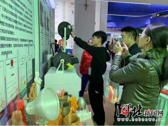 “真精致啊!”“这是什么东西?”许多参观者围在凡思达3D打印机前好奇地打量着。“这几天我做的最多的事就是科普了!”打印机设计者贾西维感慨道。记者看到,展出的打印机中,最小的只有0.5立方米左右,很适合放在家里。“这台机器4800元,其实就相当于买一部手机的钱。孩子们拿着手机多数是玩游戏,这个就不一样了,把想象的东西变成现实,对孩子们的影响是巨大和深远的。”贾西维举了一个例子:“比如家里需要一个杯托,孩子就可以自己打印,成本不过两三块钱。这对孩子的创造力和空间想象力都是一个很好的锻炼。”在河北,3D打印机已经走入校园。凡思达就为宣化五中设立了3D创客实验室。小小的一个3D打印机,不仅拓展了孩子们的思维,也影响着他们对待生活的态度。