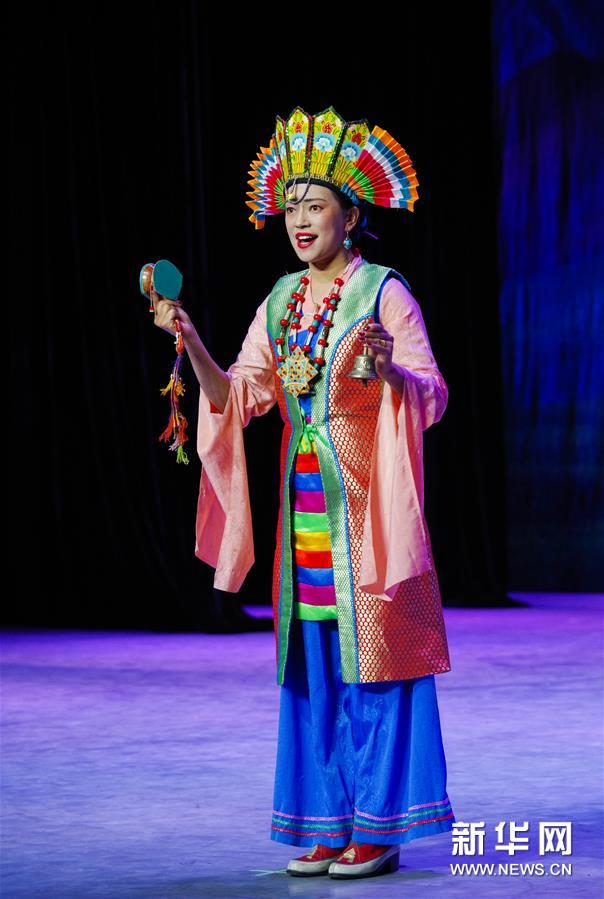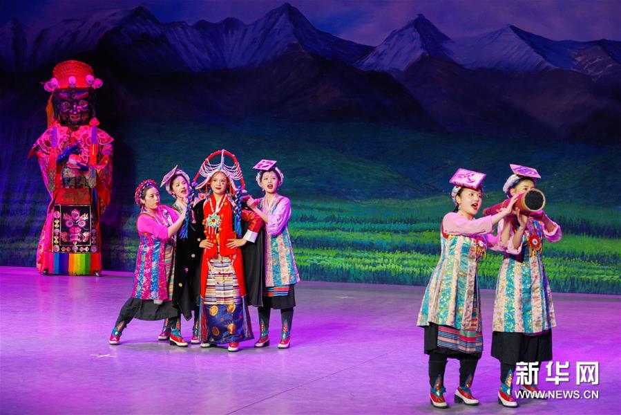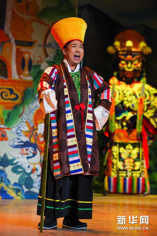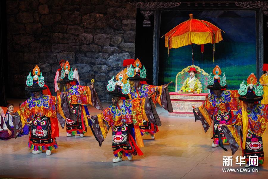 西藏自治区藏剧团演员在表演传统八大藏戏之一《朗萨雯波》片段(11月24日摄)。新华社记者 刘东君 摄