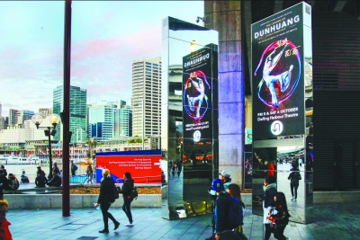 悉尼国际会议中心户外电子屏展示舞剧《丝路花雨》澳洲巡演海报