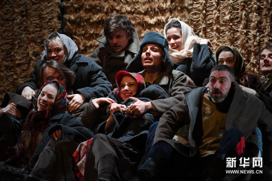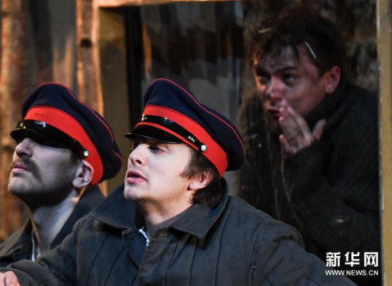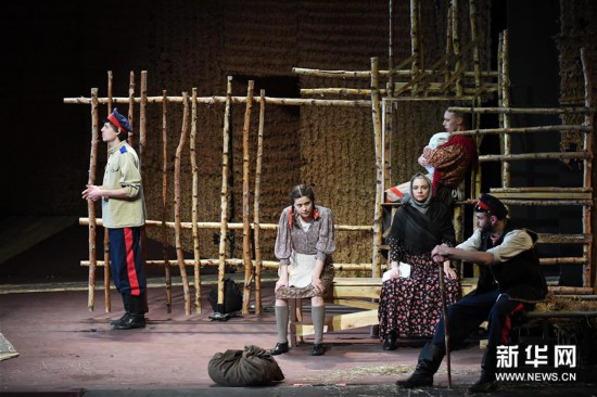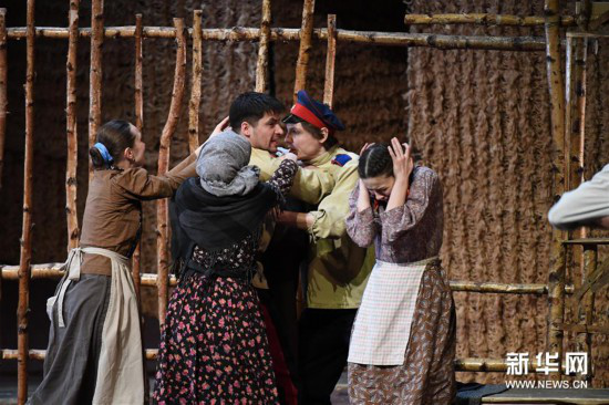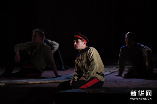 4月28日,演员在哈尔滨大剧院表演话剧《静静的顿河》。新华社记者 王松 摄