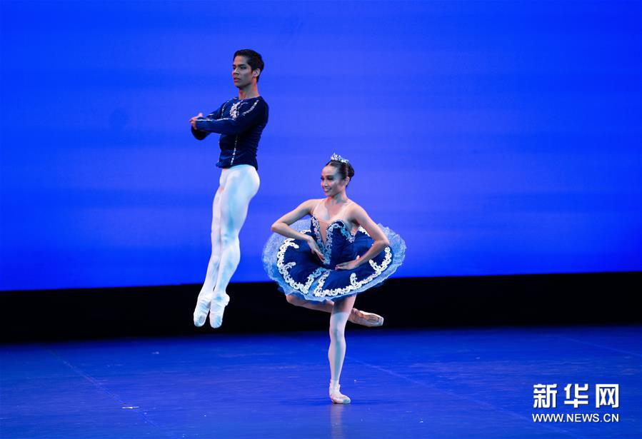 5月14日,在北京天桥艺术中心,菲律宾芭蕾舞团演员杰迈玛·雷耶斯(右)、维克托·马果表演古典大双人舞。 当日,作为亚洲文化展演活动的开幕演出,中央芭蕾舞团携手韩国、菲律宾等国家的艺术家共聚一堂,演绎了一场精彩的《亚洲芭蕾之夜》。 新华社记者 金良快 摄