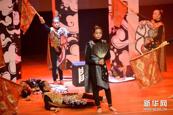 新华社吉隆坡6月15日电(王大玮)马来西亚小学生15日在首都吉隆坡以舞台剧的形式,用马来语演绎了中国古典名著《三国演义》中的一些经典故事,受到观众的热烈欢迎。