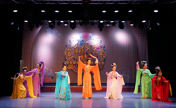 黄梅戏《天仙配》又名《七仙女下凡》《董永卖身》,是黄梅戏早期积累的“三十六大本”之一、黄梅戏的保留剧目之一,是首部以电影方式展现的黄梅戏,该故事讲述了董永家贫,父亡,卖身傅员外为奴三年,得资葬父。玉帝七个女儿戏于鹊桥,窥视人间,最小的七仙女钟情于董永,下凡与其结为夫妻。为将董永三年长工改为百日,七仙女邀众姐相助,一夜之间织成绵绢十匹,夫妻双双回转家门。此时玉帝得知七仙女下凡之事,震怒,令其即刻回宫,否则祸及董永。七仙女无奈,忍痛泣别,留下千古憾事。演员们精彩地演出赢得观众们阵阵掌声。