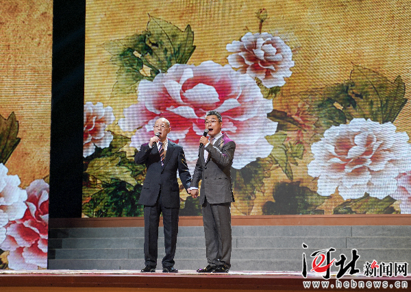 9月25日晚,“礼赞新中国 讴歌新时代”京津冀京剧名家经典唱段演唱会在石家庄人民会堂震撼开唱,图为国家一级演员、中国戏剧梅花奖获得者邓沐玮(左)和国家一级演员、中国戏剧梅花奖获得者、国家京剧院三团团长张建国(右)同台表演。 杜船摄