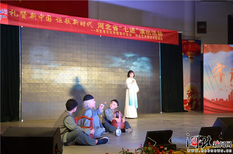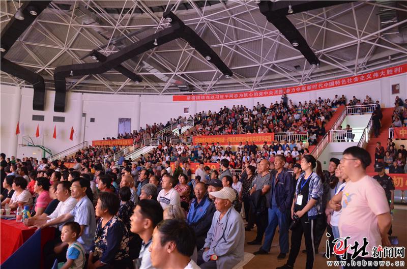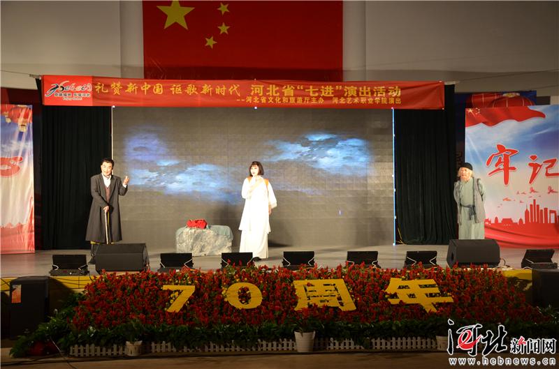 河北新闻网9月29日讯(王建)今晚,在新中国成立70周年来临之际,“礼赞新中国 讴歌新时代”——河北省“七进”演出活动走进老区赞皇慰问演出,赞皇县文体中心体育馆千余观众,欣赏了由河北艺术职业学院创排、中国戏剧梅花奖获得者彭蕙蘅领衔主演的河北梆子实验戏剧《牺牲》精彩文化盛宴。本次活动旨在激励老区人民继承先辈的光荣传统,不忘初心,牢记使命,并以此为契机,文化扶贫的理念,和革命老区心手相牵,为创建和谐社会,美丽燕赵而不懈努力!