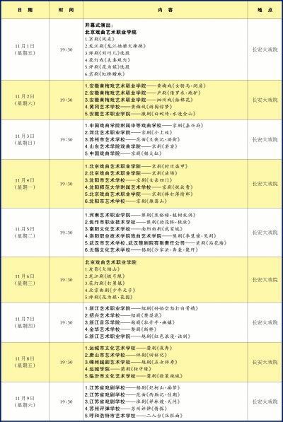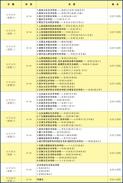 为庆祝新中国成立70周年,11月1日至20日,国家艺术基金2019年度传播交流推广资助项目——艺术职业教育戏曲教学成果展演将在北京长安大戏院举办。此次展演由中国艺术职业教育学会主办,北京戏曲艺术职业学院、中国艺术职业教育学会戏曲专业委员会承办,同时得到了国家艺术基金的大力支持。