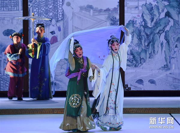 10月30日,在福建凤凰剧院,福建省莆仙戏剧院的演员在表演莆仙戏《踏伞行》。新华社记者 宋为伟 摄
