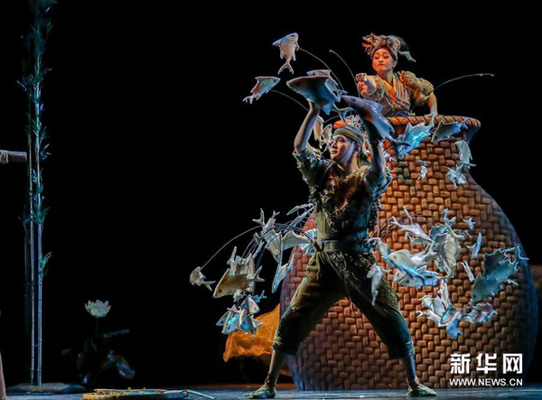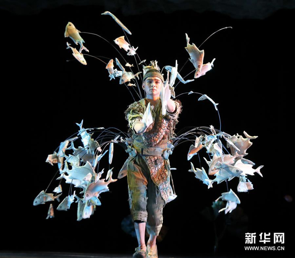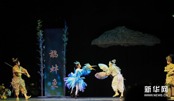 11月2日,在美国加利福尼亚州旧金山湾区坎贝尔,演员表演儿童剧《鹤·蚌·鱼》。新华社发(董旭东摄)