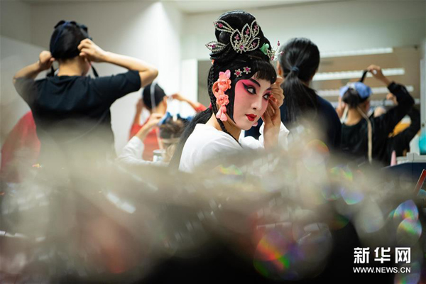 11月10日,演员在后台化妆。新华社记者 张金加 摄