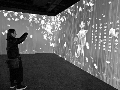 观众在“上官婉儿越剧数字艺术展”参观体验