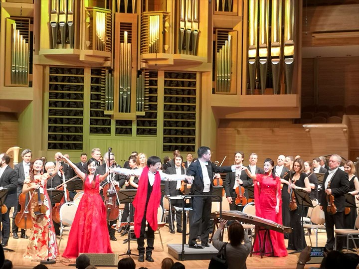 2018年,“燕赵弦韵”组合与俄罗斯国家交响乐团在莫斯科国际音乐厅联袂演出“欢乐春节”专场音乐会。 河北省文旅厅供图