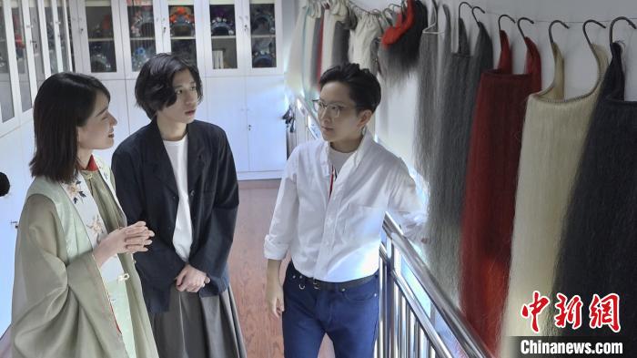 京剧名家王珮瑜带领两位主播走进上海京剧院。 康玉湛 摄