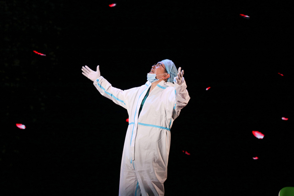 总导演王佳纳表示:“该剧除有编剧、导演、演员、舞美和化妆等具有国家一级职称的专业团队以外,还有来自南方医科大学第三附属医院7名援鄂医疗队员的本色出演;医护人员与演员同台演出,尽管戏份不多,但剧组请医护人员在剧终谢幕时现场分享自己的演出感想,使得整部作品更为温暖感人。”第一批援鄂医疗队队长、南方医科大学第三附属医院的张达成在参加演出后坦言:“因为是首次跨行业出演,虽然有一点紧张和僵硬,但我主要是想让更多的百姓能了解我们的行业,也想传递一个信息给大家,就是只要有我们医护人员在,老百姓就会感到安心和放心。”