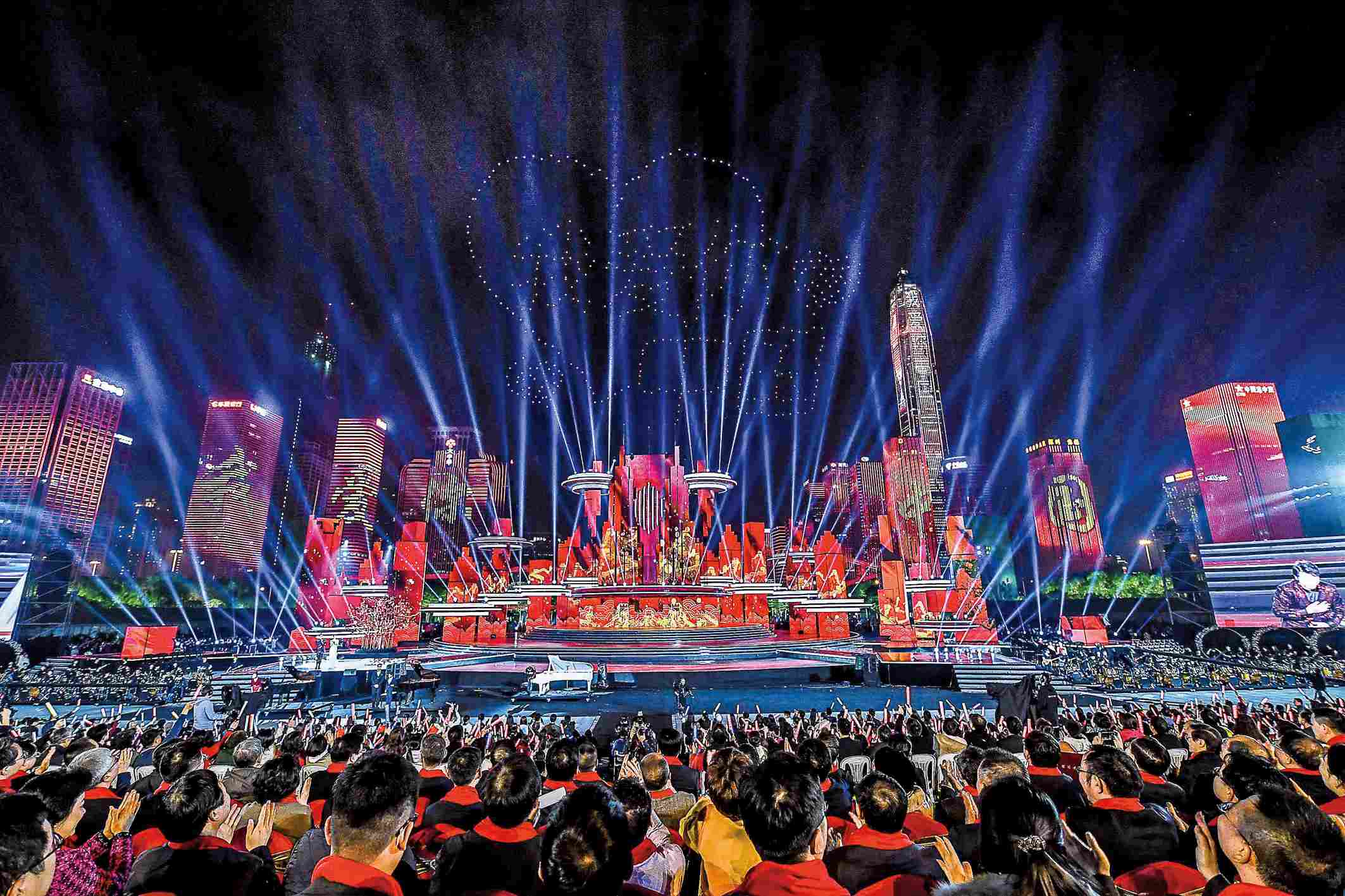 《我爱你中国》晚会亮相深圳湾畔,融入青春之城、科技之城、时尚之城、未来之城等元素,祝福新中国成立70周年。