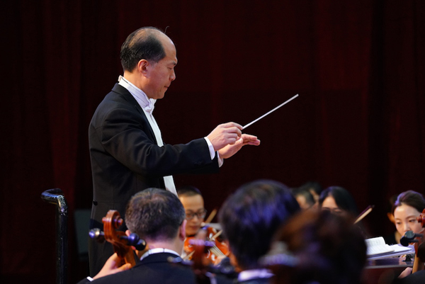 7月25日晚,《英雄》交响音乐会致敬抗疫英雄,图为特邀指挥张国勇。屈亚栋摄