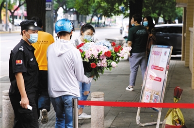首都剧场今年首部售票剧目开演,不能到场的观众闪送了鲜花。