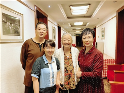 唐烨(左二)与主演及濮存昕母亲合影。唐烨供图