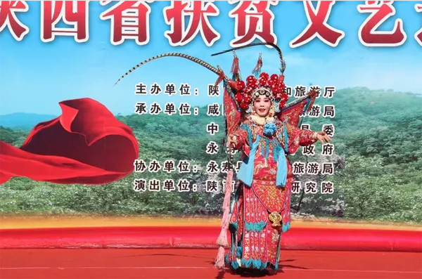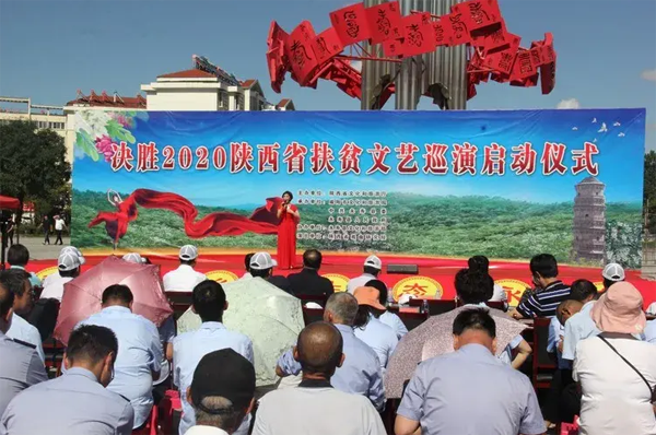 为贯彻落实党中央、国务院扶贫工作相关要求,充分发挥文艺演出在“扶志”中的重要作用,丰富全省基层人民群众精神文化生活。8月31日,由陕西省文化和旅游厅主办,咸阳市文化和旅游局、永寿县委县政府承办的2020年全省扶贫文艺巡演在咸阳市永寿县拉开帷幕。在未来两个月的时间里,陕西省戏曲研究院、省歌舞剧院、西安歌舞剧院、汉中歌舞剧团、宝鸡市艺术剧院5家演出单位,将分赴全省56个县区市,举办66场扶贫文艺演出活动,用文艺助力脱贫攻坚。