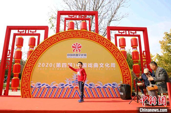 2020(第四届)中国戏曲文化周主场活动在北京园博园落下帷幕。图为票友舞台上的小演员。北京市丰台区供图