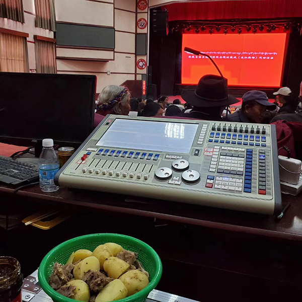 这样的强化训练非常有效,旦增终于把整台演出的程序编下来。接下来是合成的关键阶段,结合旦增的情况,朱丹把控制台切换到AB场模式,手动和自动时间自由结合,“师徒”二人一起探讨,以简单的字母、符号来表示,就这样旦增顺利完成了控台。接下来的彩排、演出自然变得非常顺利。
