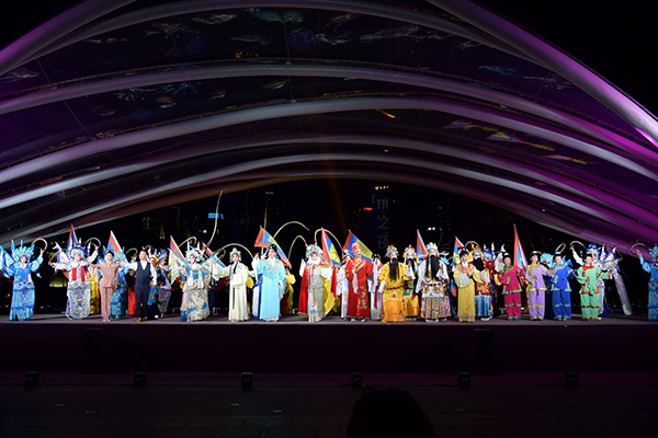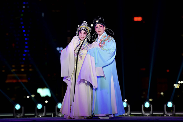 2020年是决胜全面建成小康社会、决战脱贫攻坚之年, 广东作为改革开放的前沿,经济社会飞速发展,带动文化事业取得大发展大繁荣。晚会分别选取了粤剧、潮剧在新时代创作的艺术佳作进行展示。其中,广州粤剧院的青年艺术家李伟骢、莫燕云演出了现代粤剧《清水河畔》选段,该剧以“绿水青山就是金山银山”作为戏剧立意,展现出当下具有广州特色的新农村面貌。潮州市潮剧团青年艺术家黄奕凯、黄学嫩演出了现代潮剧《韩江纸影人》选段“对偶相思”,该剧以“新中国成立70周年、《告台湾同胞书》发表40周年”为时代主题,讲述潮州纸影(铁枝木偶)戏班几十年的恩怨情仇。