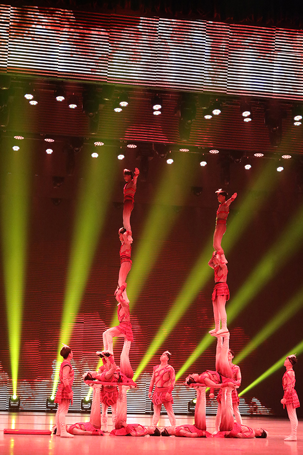 济南市杂技团带来杂技《勇者无畏·蹬人》 胡可摄