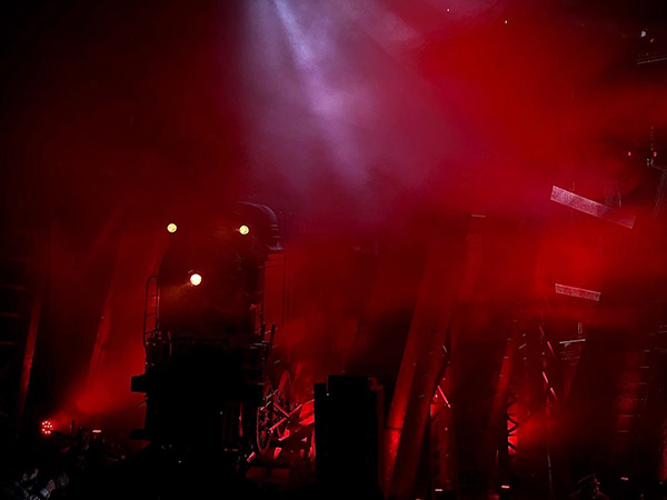 为让观众体验沉浸式效果,《铁道英雄》采用解构和重构理念进行舞台设计,利用枕木和铁轨搭建出一个立体的、伸展向上的环形铁道,极具压迫感的火车头带动车厢在环形铁道上滑行。“黑白灰”的主调既充满工业风格,又凸显出鲜明的现代感。