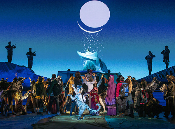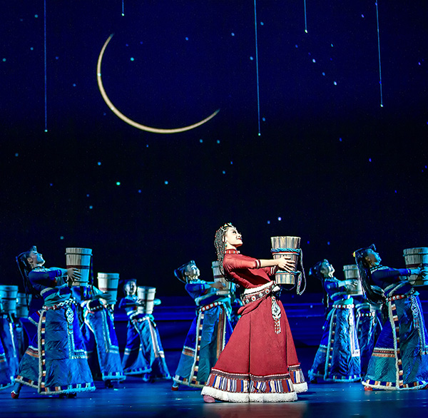 主创的一腔深情化作灵感的火花与创作的冲动。《大河之源》从黄河源头出发,从人类起源、人与自然相谐相生的角度探寻华夏文明的发展史,阐释广博中华文化中的河湟文化,赋予中华水塔以文化的内涵和文明的生机。《大河之源》的剧本围绕人与生态、人与动物、人与人等多重关系,巧妙地构建穿越千年的叙事主线,舞台表现方面融合了“戏中戏”复式结构、类似电影“蒙太奇”的剪辑手法等,运用“第一人称”视角展开舞剧叙事,既有感人至深的情感故事,又表达着对史前文明、游牧文明、生态文明、科技文明及其对话互鉴的思考与关怀。