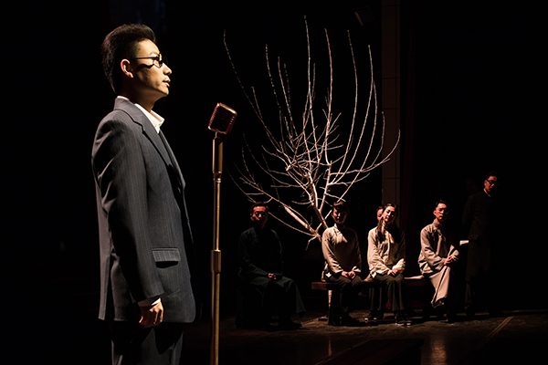 再看哲理性概括。该剧通过汪静之、徐志摩、胡树昌这三个人物的先后出场,来隐射情感的逻辑关系,图解人性的复杂与变化多端。汪静之是初坠情网的胡适的化身。汪静之对曹的维护,是发自内心的。从汪、曹在新新旅馆的猝然相遇,汪有些失态的表现,到汪决心帮曹获取该有的身份,再到汪对胡处理情感问题上的失望,这一系列人物的心理变化,通过演员精准、细腻、传神的表演,使观众感同身受。汪说自己从心里爱着曹,“从小就爱,爱了这么多年”!这样的感情已随着岁月的流逝升华为圣洁的爱——象征着爱是一切的美好。徐志摩是陷入情感困境的胡适的化身。徐是可以为爱情而全力以赴的那种人——“砸了老场子,拉个新场子,唱你最想唱的戏”,这话虽粗糙却符合他的人生信条,他与陆小曼的结合,算得上轰轰烈烈,但只是两颗失意的心擦出的一场爱的火花,短暂的璀璨后复归湮灭——象征着爱终会幻灭。胡树昌是看破凡俗情爱的胡适的化身。他是胡适少年启蒙的私塾先生,还视胡适如己出,但他一生未婚未育——象征着爱是洁身自好。