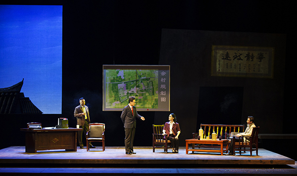 诚然,苏青山在余村谋生计,苏老汉也来到过余村村口,阿桂嫂却与父母19年不相往来,未免有点不近情理;以赌酒来决定房子拆与不拆,也显得儿戏。但各色人物之间的矛盾冲突,凭借演员们鲜明的艺术形象塑造和高超的舞台表演技巧而妙趣横生:一顿特别的小年夜饭,几杯勾起往事的酒,酒中有少小的友情、动人的爱情、断殇的亲情……从中使我们依稀看到了乡村变化的伟大历程,看到了新生态经济的独特意义,更看到了基层村干部们的艰辛与情怀。