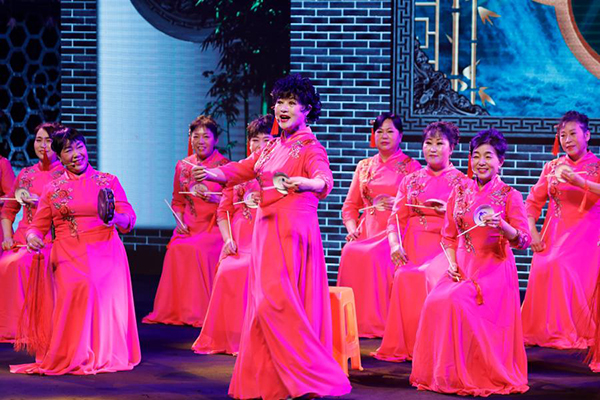 12月7日,演员在河南艺术中心大剧院表演河洛大鼓《二姐观灯》。