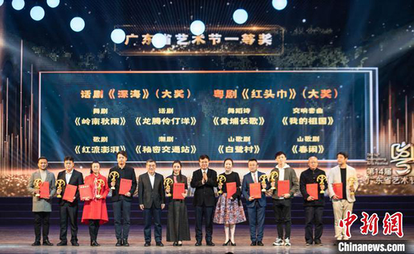 中新网广州12月7日电 (记者 程景伟)以中华人民共和国最高荣誉勋章“共和国勋章”获得者、“中国核潜艇之父”黄旭华为故事原型的大型话剧《深海》,在12月6日晚举行的第十四届广东省艺术节颁奖晚会上,获得大型舞台艺术作品大奖。