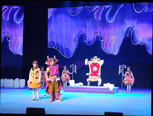 舞台艺术与科学健康的理念结合会碰撞出怎样的火花?舞台上,正直的巧克力小将、聪明的海苔姑娘、害羞的棉花糖仙子、莽撞的汽水大力士、灵活的爆米花夫人、自信的白水公主、邪恶的S菌大王……新颖的立意构思,鲜活的人物设计,生动有趣的表演,让现场的小朋友们看得兴致勃勃,流连忘返。儿童剧《唐小酷的零食柜》在石家庄首演。图为演出现场。河北日报记者史晓多摄