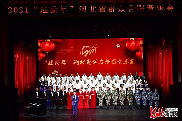 为丰富人民元旦春节期间的文化生活,营造和谐、愉快的节日氛围,同时为合唱爱好者搭建互相学习和交流的平台,进一步繁荣和推动我省群众合唱艺术事业的蓬勃发展,通过惠民活动,让高雅艺术走进百姓中。12月31日,由河北省群众艺术馆、石家庄市群众艺术馆主办,石家庄市新华区文化馆、石家庄市桥西区文化馆承办的“2021迎新年—河北省群众合唱音乐会”在河北省群众艺术馆虹光剧场举办。