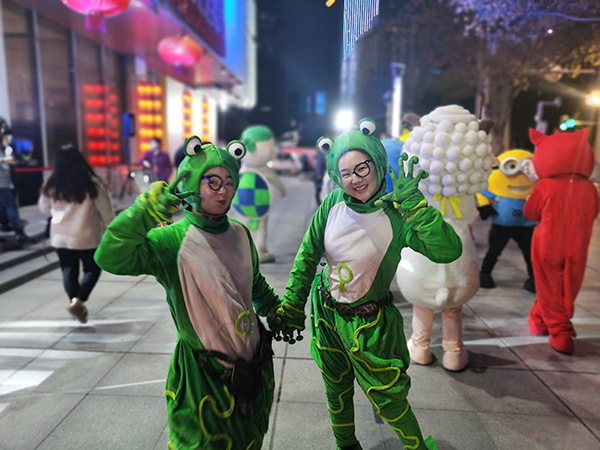 和以往节会活动闭幕式不同,本次戏剧演出季闭幕式前,主办方专门安排了《迎新光影秀》《童话嘉年华》等暖场互动演出。中南剧场大门口的广场上,童话装扮的人偶、身着戏服的演员载歌载舞,与观众热情互动。